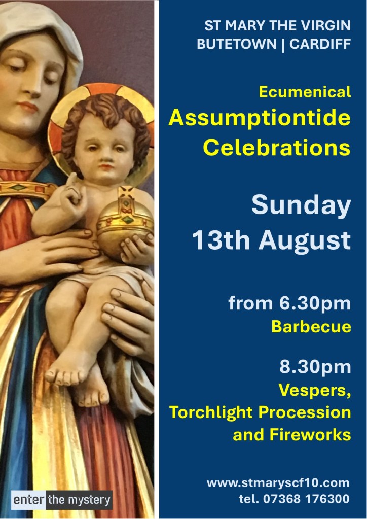 There are many opportunities for us to make pilgrimage together – to Flat Holm in the Bristol Channel, Penrhys in the Rhondda, Glastonbury in the South West of England, Walsingham in Norfolk, as well as our Assumptiontide celebrations at St Mary’s in August.