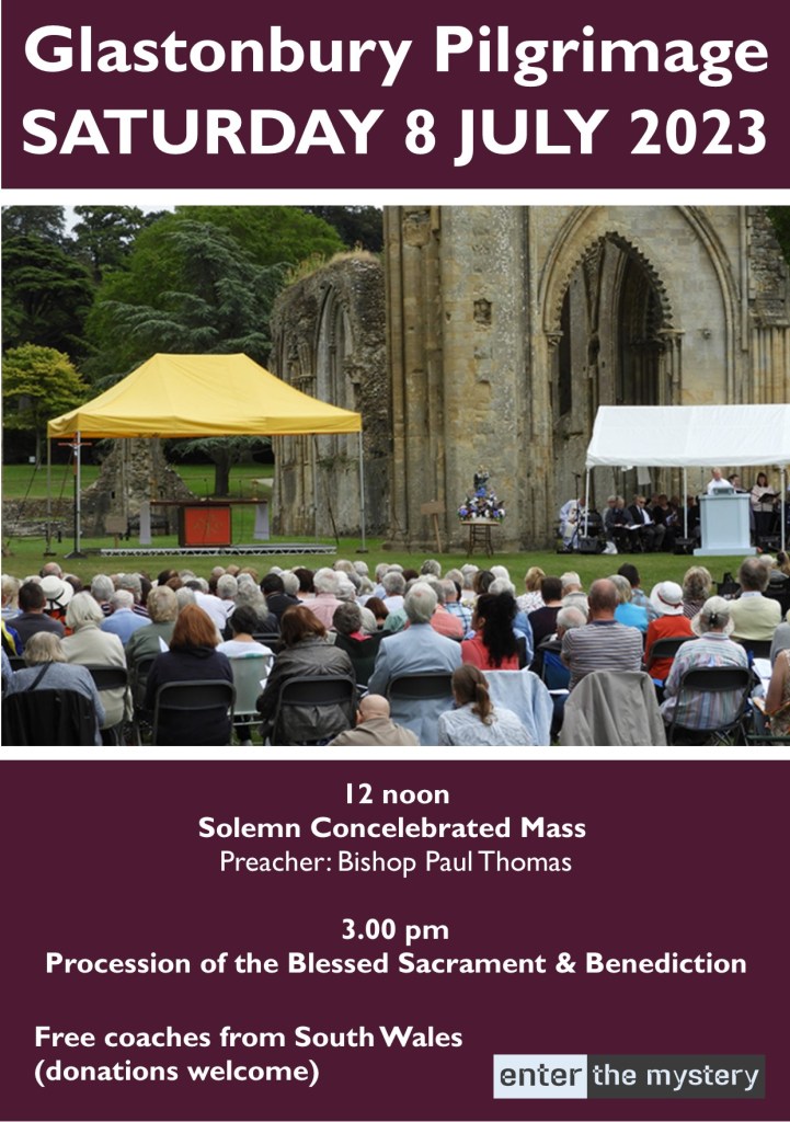 The pilgrimage to Glastonbury celebrated in the midst of the Abbey ruins is a well established event. Each year, large numbers from South Wales take part and there are free coaches available. So, why not join us this year on Saturday 8 July. You can book your seat on the coach directly with us, and you can find out more about the pilgrimage at their website