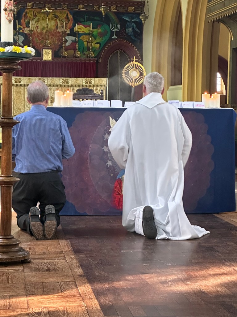 And then, there, in the midst of our names and our reserved places, the Blessed Sacrament was placed upon the altar and, after a time of prayer, we received a blessing.
