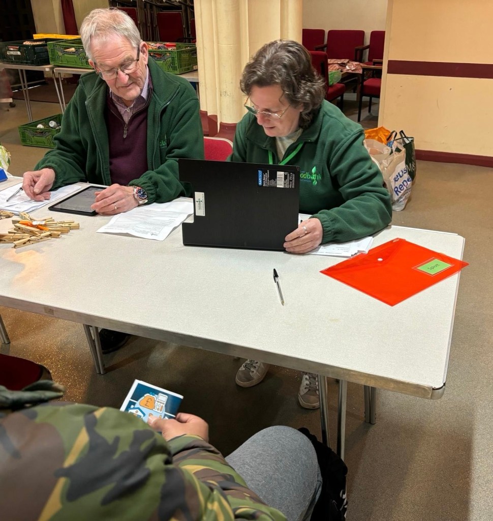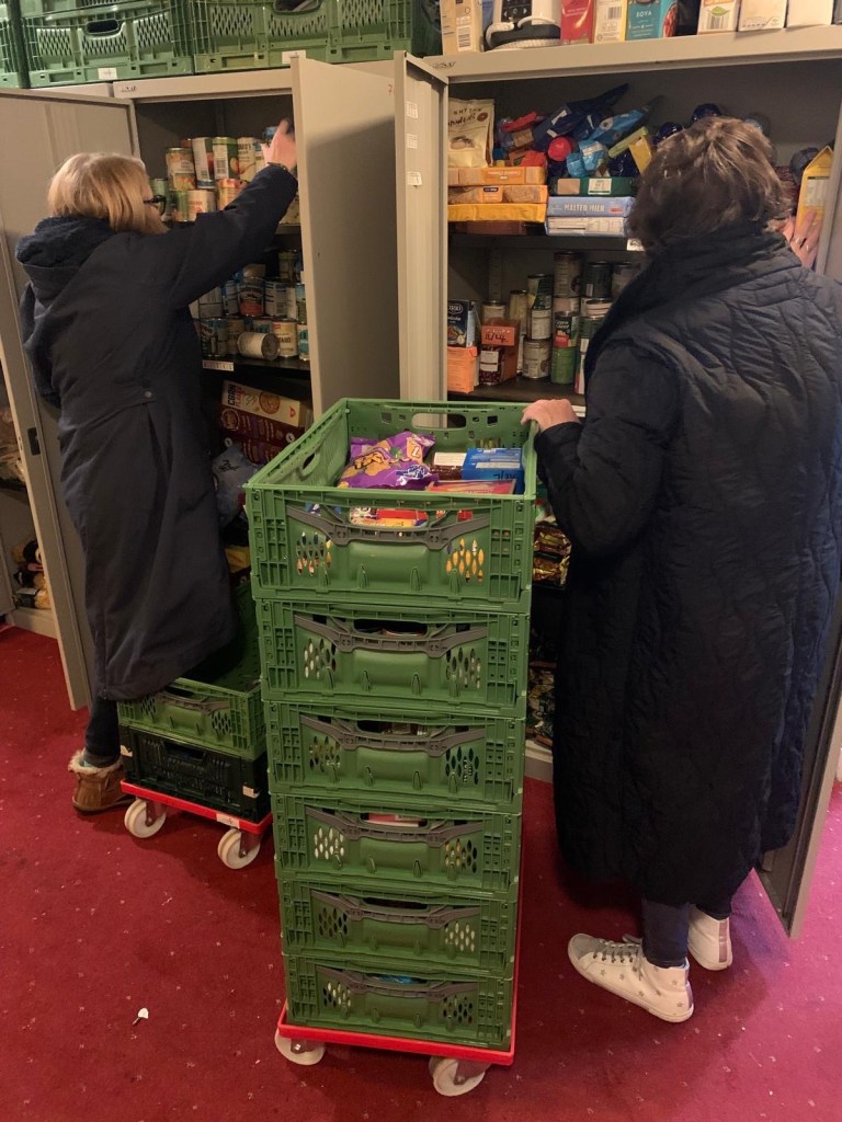 Both are members of the congregation at St Saviour’s. They are there, week in, week out to do some of the many jobs involved from welcoming clients and administering the voucher system, to packing bags according to need or making a cup of tea whilst they wait.