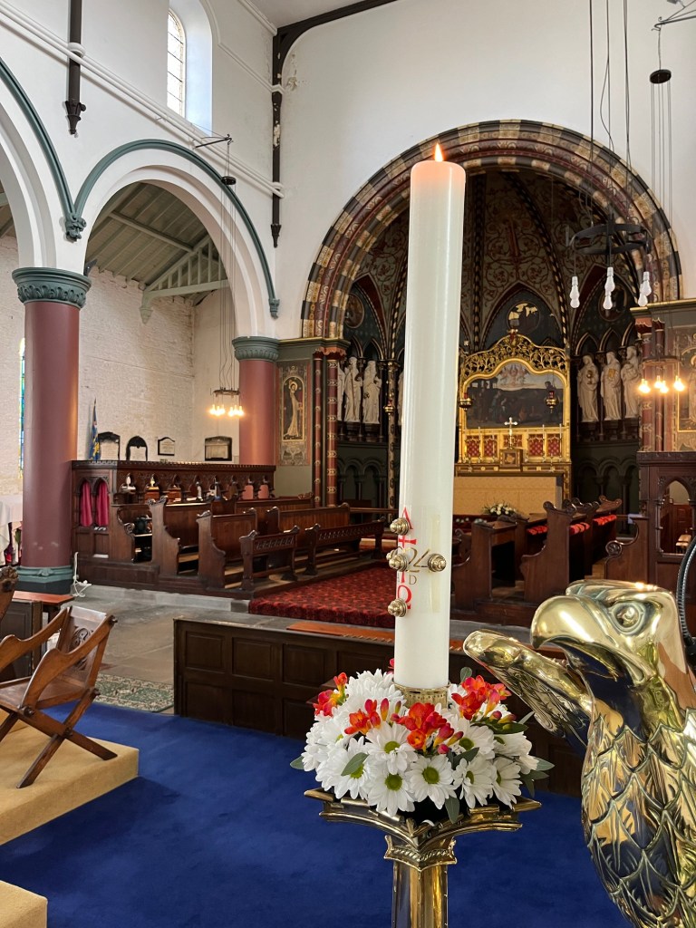 But, a change of scenery will come in the coming weeks. At the end of Pentecost Sunday (May 19) the Candle is extinguished and moved to the Font, setting the scene for the rest of the year.