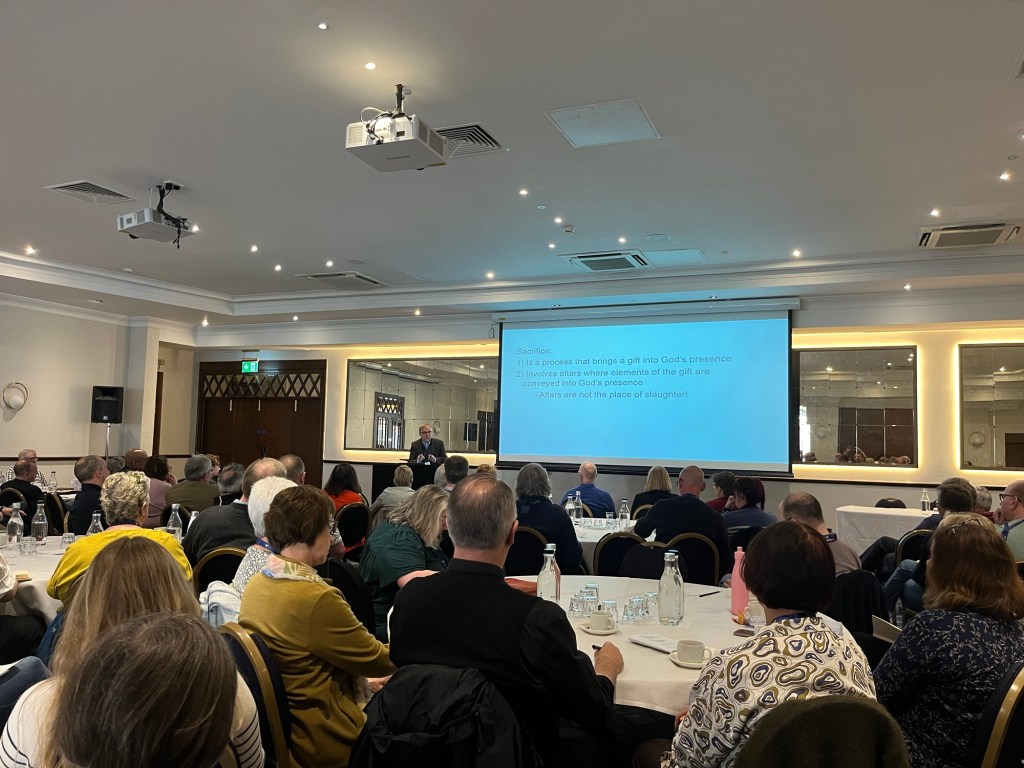 We’re back at our tables to listen to Dr David Moffitt, Reader in New Testament at St Andrews University. He takes us on a tour of “Sacrifice”, leads us from Leviticus in the direction of the Ascension as Jesus takes the gift into the presence of the Father.