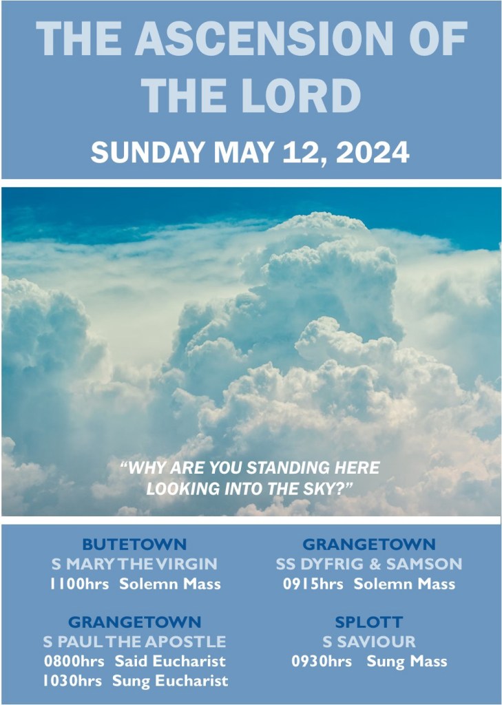 We’re celebrate the Ascension of the Lord on Sunday May 12th with Mass at the usual times. You can read a reflection about the Feast from Fr Dean here: