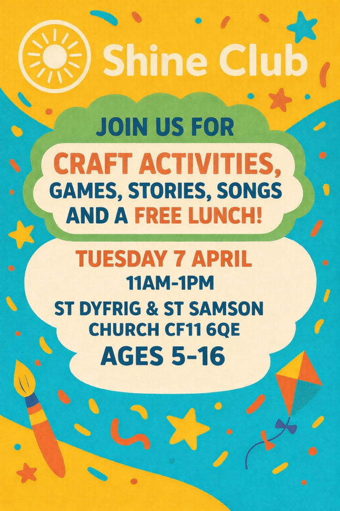 Our school holiday activity morning for children and young people – Shine Club – is taking place on Tuesday 7 April in St Dyfrig & St Samson.
