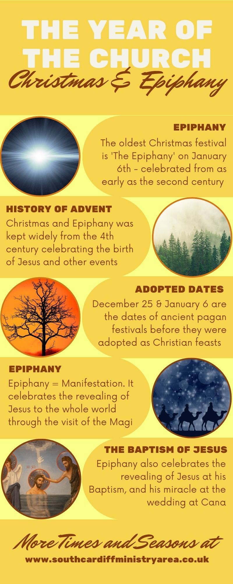 There are two important Christian festivals in the Winter. Christmas (December 25) and Epiphany (January 6) . The Epiphany is the oldest although both were only widely celebrated from the fourth century.