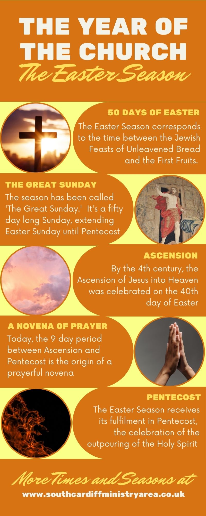 Rooted in Judaism, the fifty days of Easter is the oldest season of the Church’s year. It corresponds in part to the Jewish period between the Feast of Unleavened Bread and the Feast of First Fruits (also known as the Feast of Weeks or Pentecost).